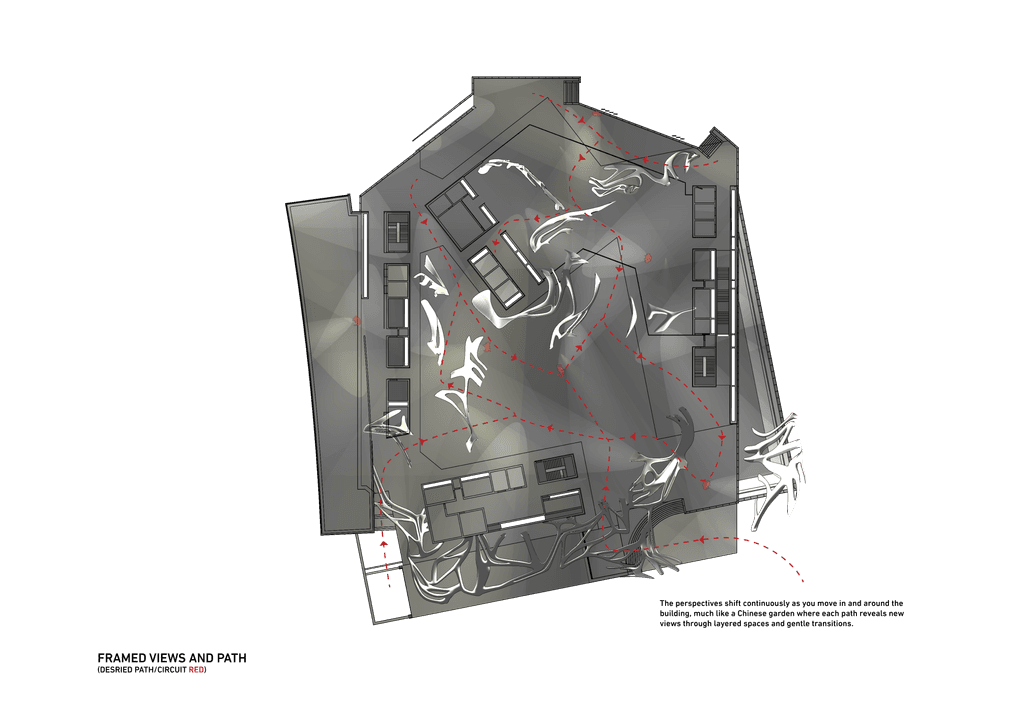 The architecture resonates with the lineage of traditional Chinese homes, adopting a centralized courtyard and a choreography of gardens and interstitial spaces. These elements frame views, guide movement, and orchestrate shifting perceptions. The interplay of natural growth and cultural precedent transforms the structure into a living, expressive canvas where architecture, art, and environment coexist in a continuous cycle of discovery and engagement.