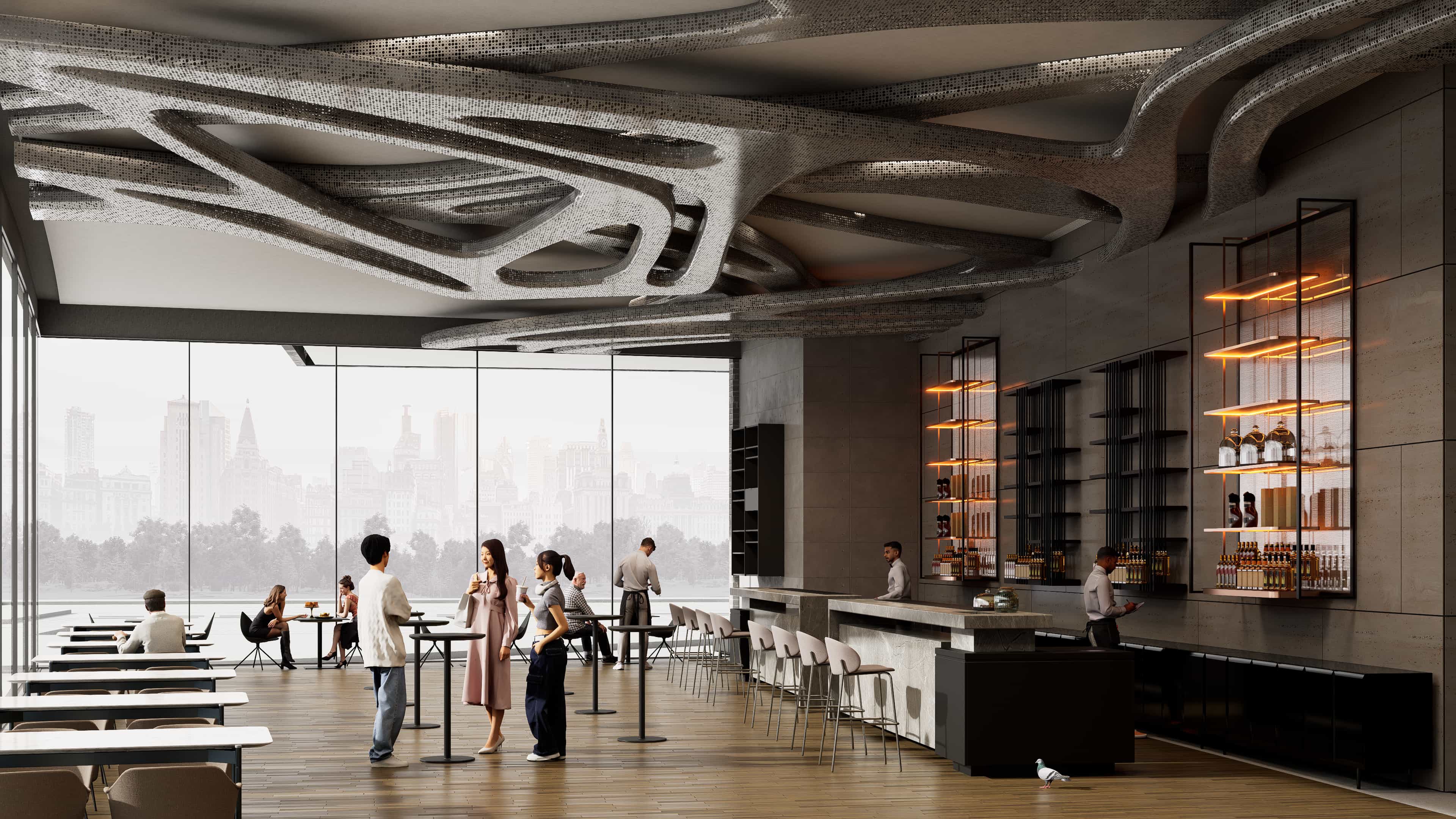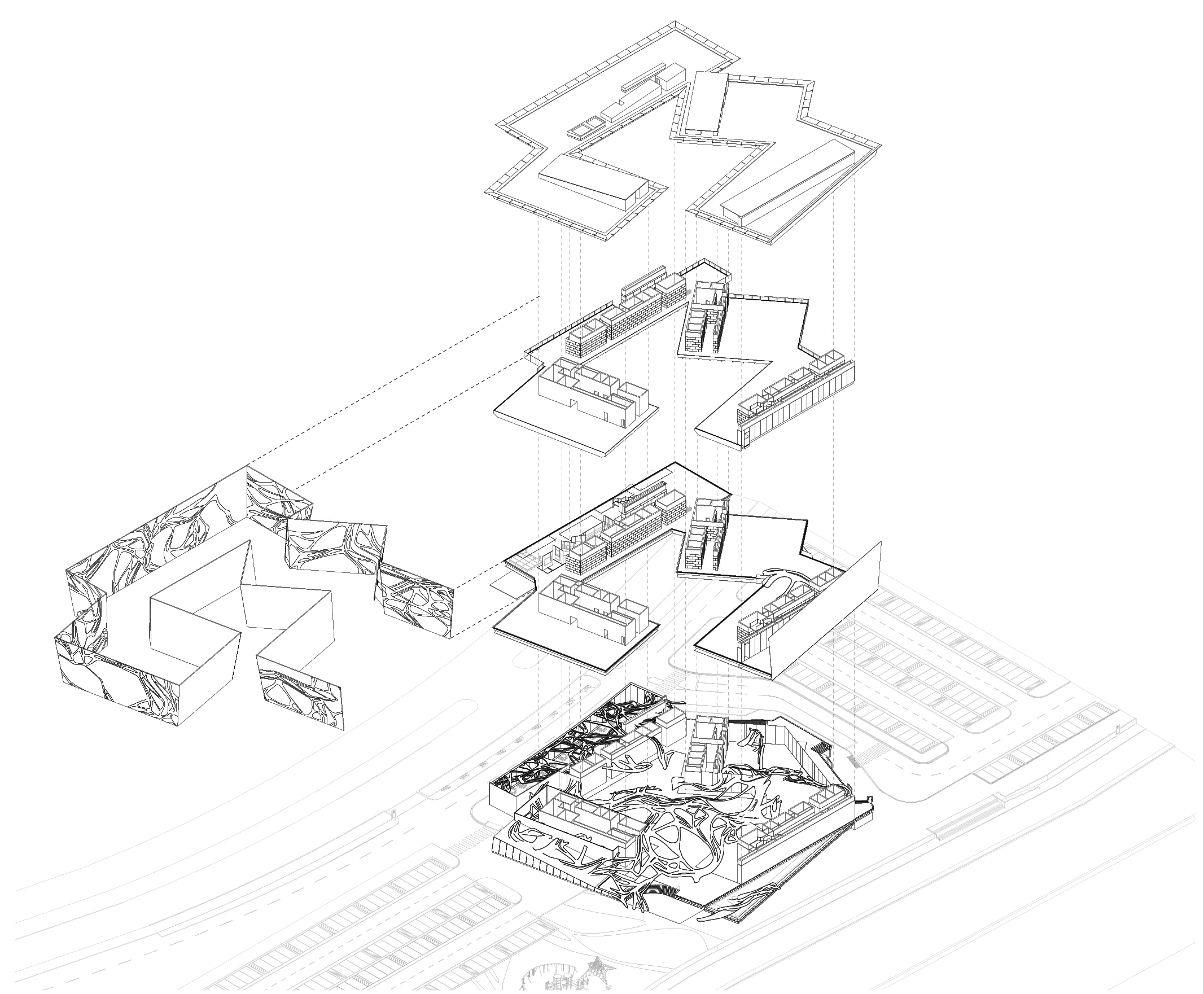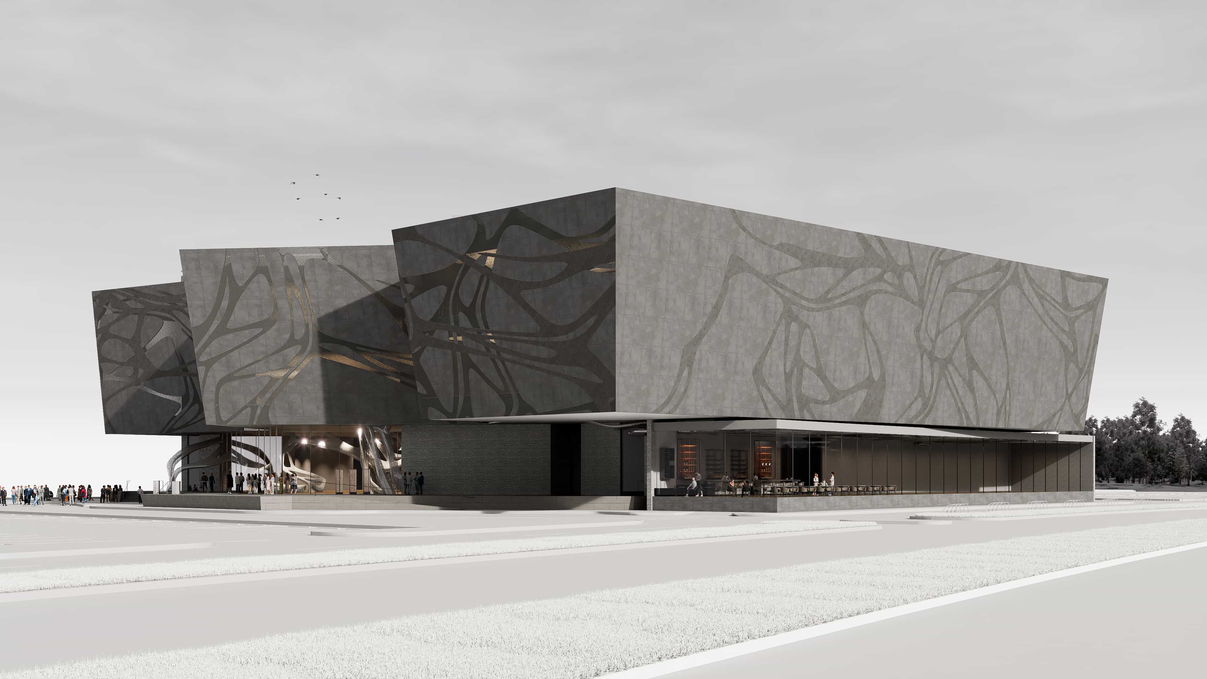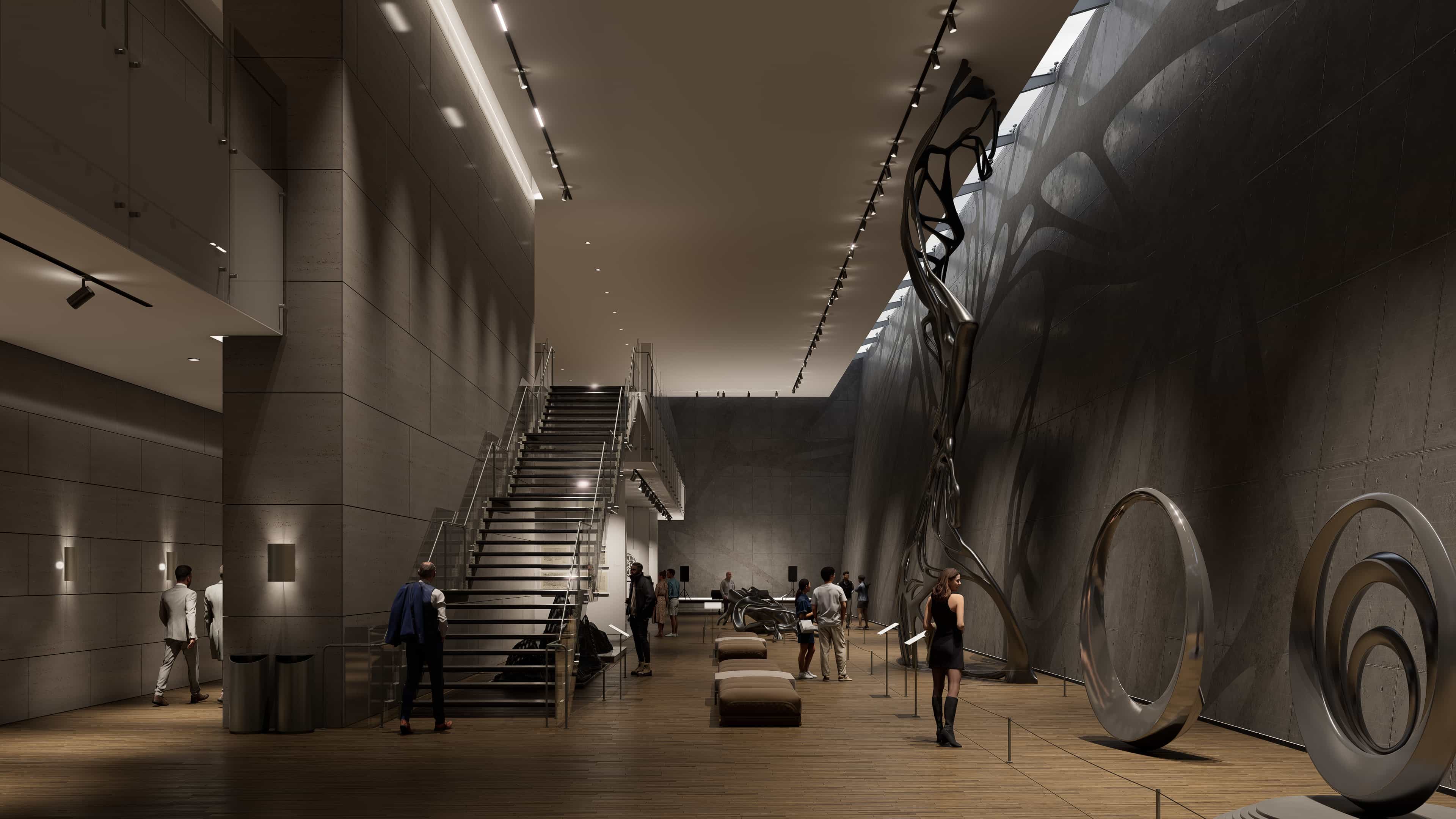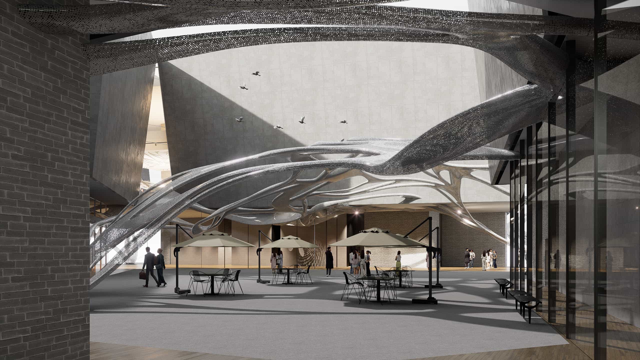 The building's organic processes guide both the accumulation and articulation of the architecture, creating a continuous, evolving surface that integrates structure, landscape, and art. The veins and moss-like forms are realized through 3D printing in steel and concrete, giving the architecture a tangible, sculptural presence. Visitors navigate through the building as though moving within an artwork itself, encountering expressions and installations embedded within the evolving environment.