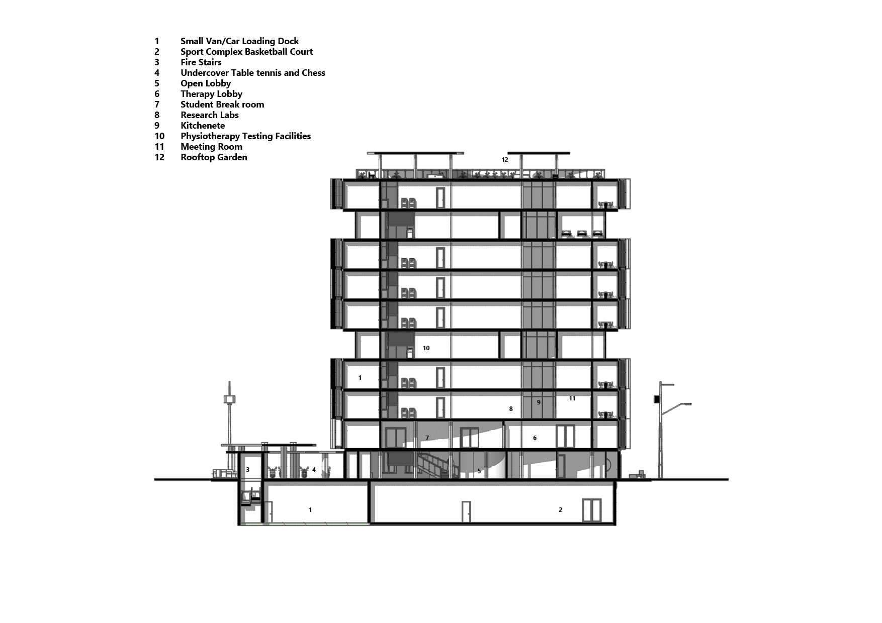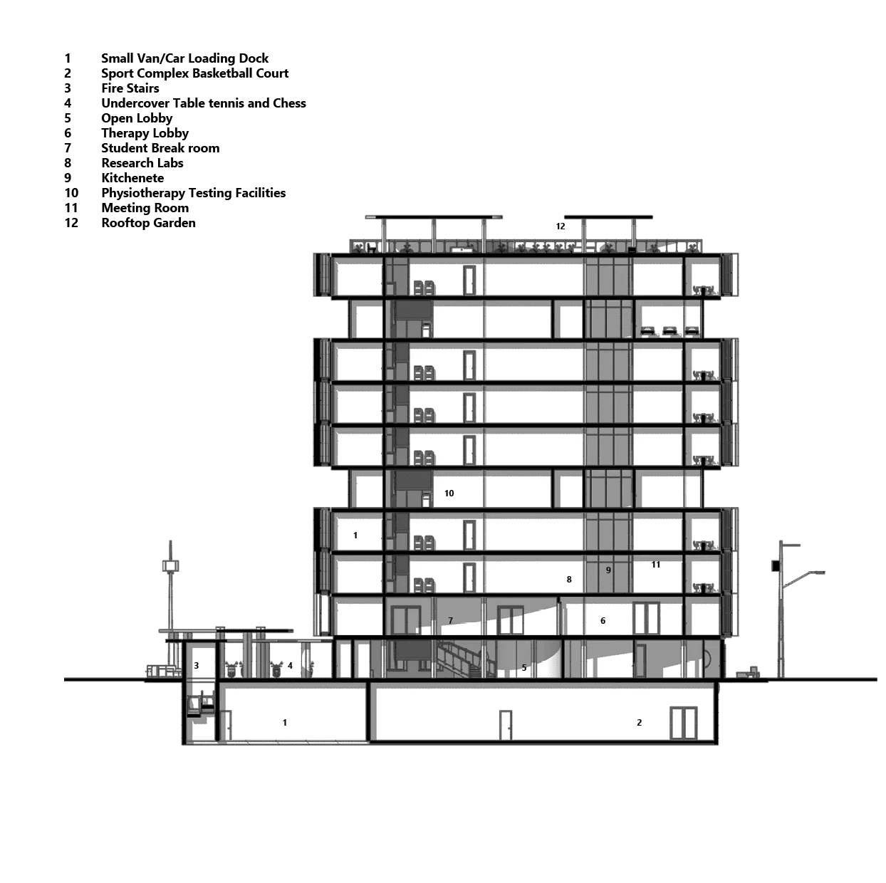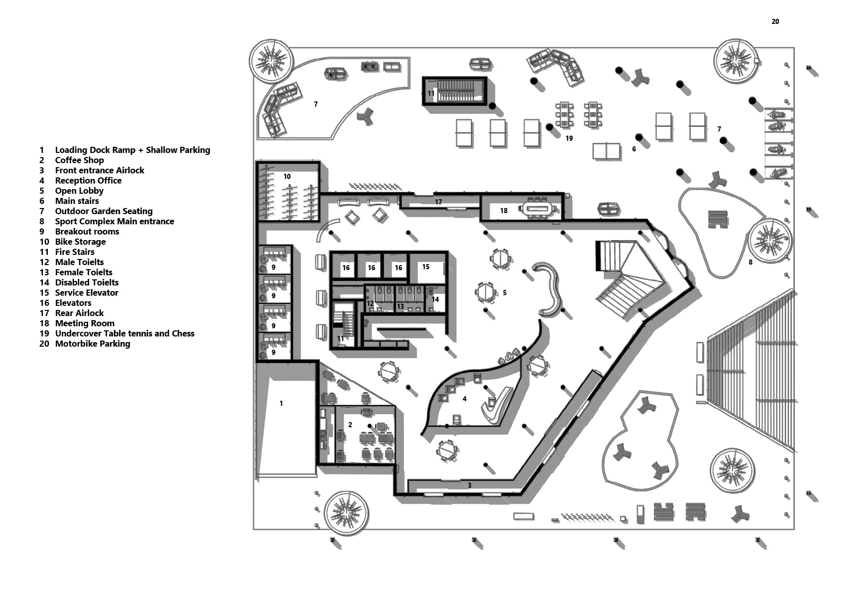 The ground floor is arranged to balance public openness with moments of privacy and retreat. The lobby, coffee shop and garden seating form a welcoming civic edge, encouraging movement and gathering while giving the building a strong public presence. The sports entrance and recreational areas extend this atmosphere, supporting informal social life.
