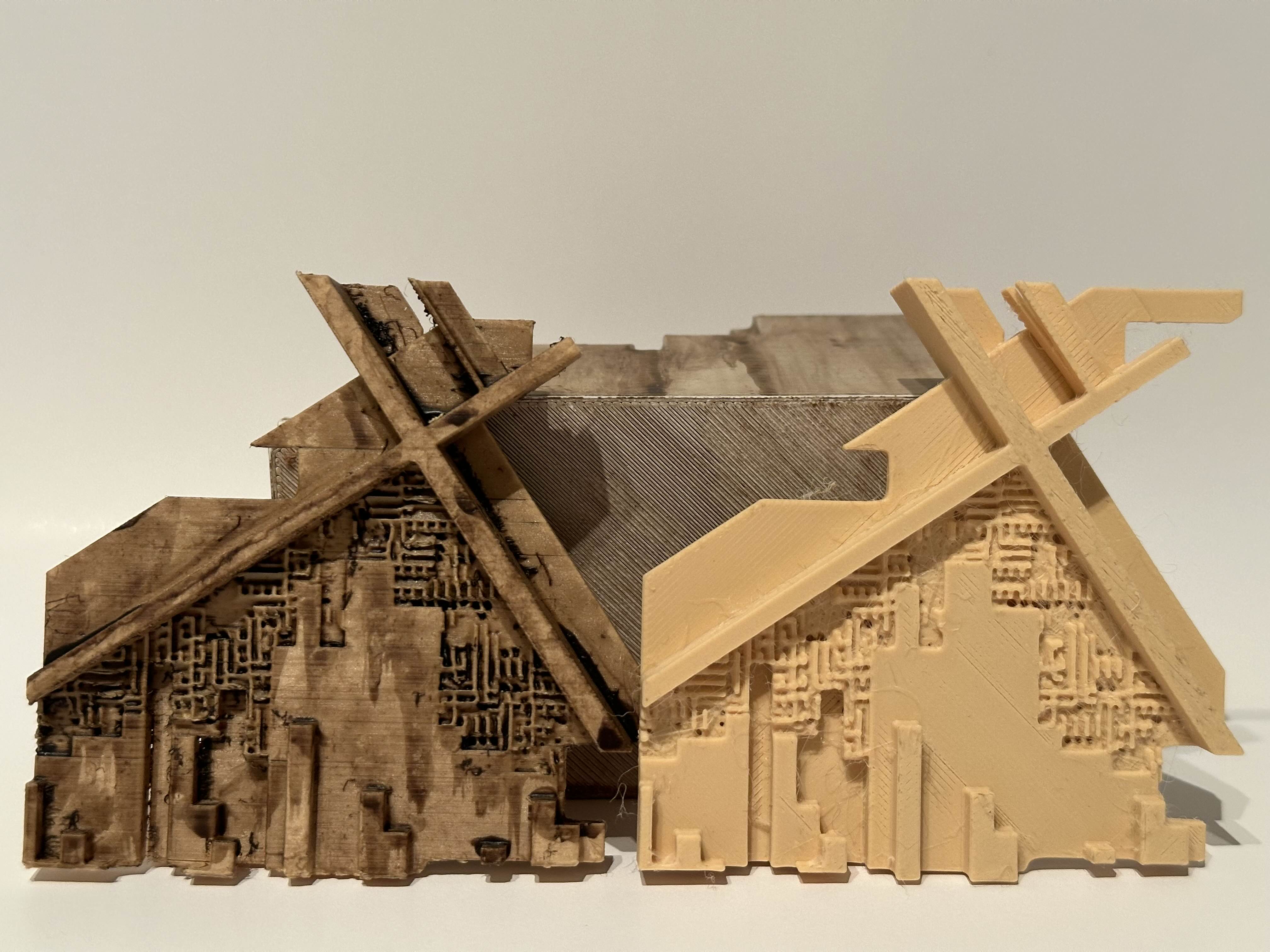 Textured 3d Printed Sawdust original vs weathered over time